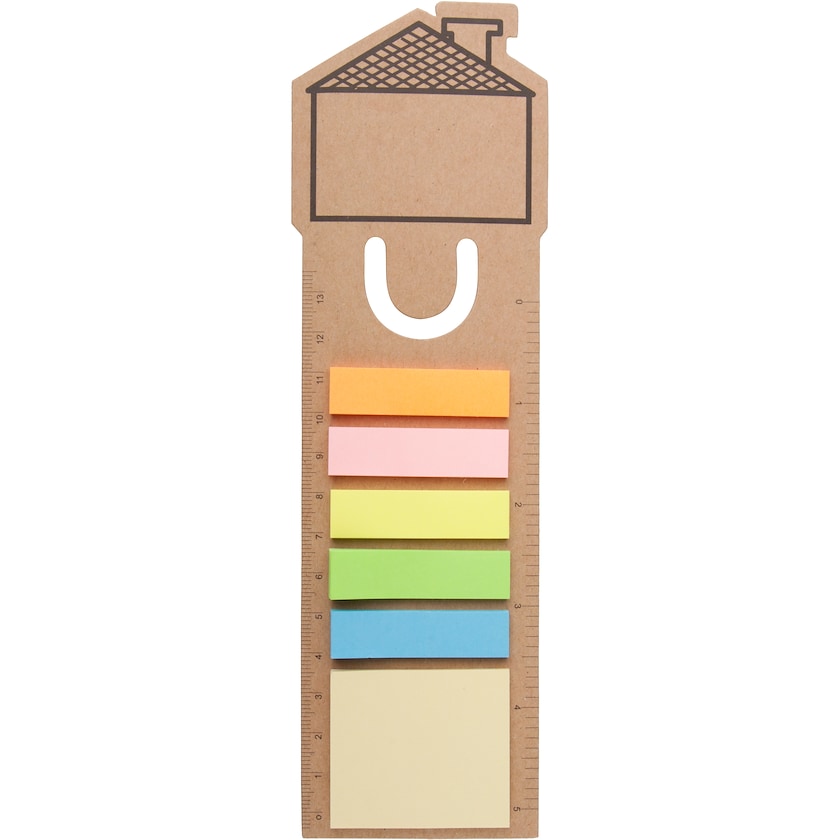 Haftstreifen mit Lineal und Hausmotiv. Dieses Produkt enthält farbige Haftstreifen und Notizblock. Perfekt für alle in der Immobilienbranche.