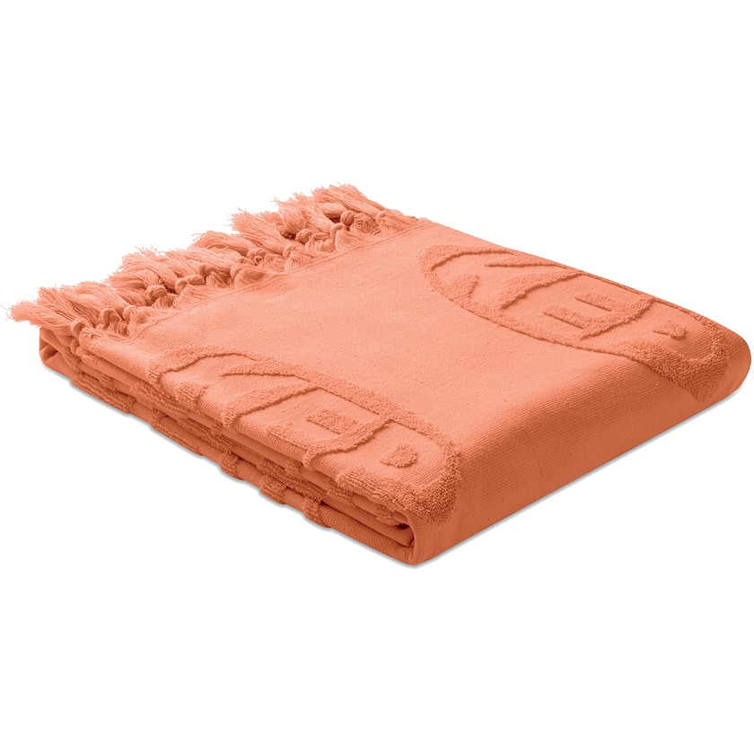 Hamamtuch mit geknoteten Fransen und Ihrem Motiv im Relief eingewebt. Der Stoff hat ein Gewicht von 320 g/m² und besteht aus 100% Baumwolle. Die Farbe des Handtuchs wählen Sie selbst durch Eingabe des gewünschten Pantone-Codes. Das Motiv erscheint je nach Seite erhaben oder vertieft. Gelieferte Menge kann +/- 10% von bestellter Menge abweichen (gelieferte Menge wird fakturiert).