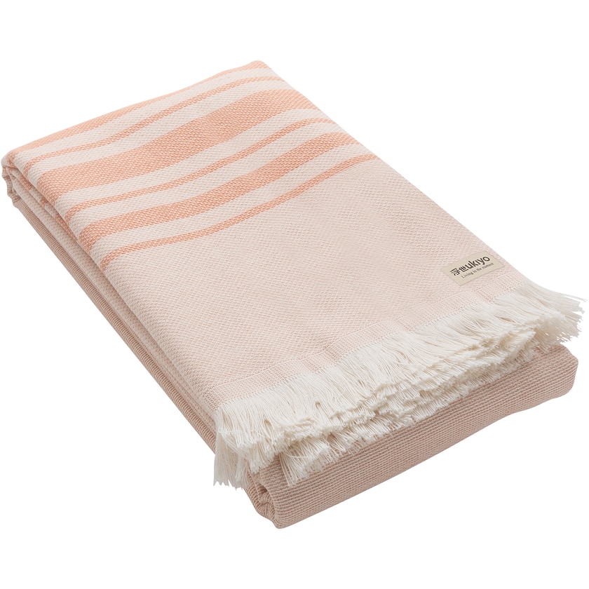 Wunderbares Hamamhandtuch von Ukiyo. Das Handtuch besteht aus OEKO-TEX zertifizierter Baumwolle und recycelter Baumwolle. Obwohl der Stoff dünn ist, hat das Handtuch eine ausgesprochen hohe Saugfähigkeit. Funktioniert sowohl als Handtuch als auch als Decke. Produziert in Portugal.