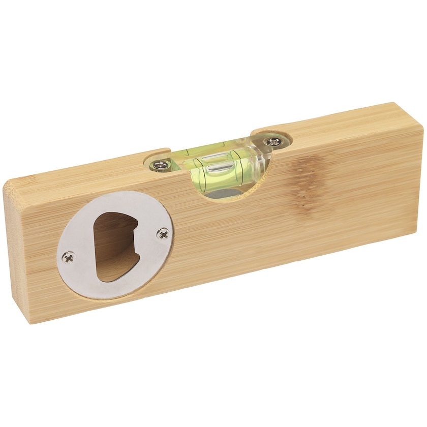 Wasserwaage aus Bambus mit integriertem Flaschenöffner. Erst die Arbeit, dann das Vergnügen! Bambus ist ein natürliches und ökologisch nachhaltiges Material. Farben und Abmessungen können daher zwischen verschiedenen Exemplaren leicht variieren. Die Lieferung erfolgt einzeln verpackt in einer stilvollen Geschenkbox. Die Kennzeichnung kann entweder durch Aufdruck oder Lasergravur erfolgen.