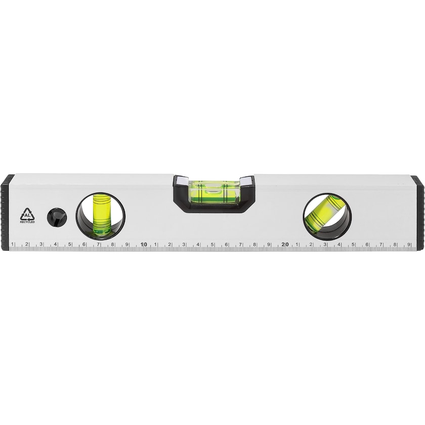 Wasserwaage mit drei verschiedenen Ausrichtungen und einem 30-cm-Lineal. Keystone ist eine magnetische Wasserwaage aus robustem Recycling-Aluminium.