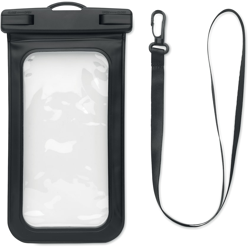 Wasserdichte Handytasche mit abnehmbarem Gurt. Wasserdicht gemäß Klassifizierung IPX 8. Geeignet für Mobiltelefone mit maximal 6,7 Zoll Bildschirmdiagonale. Es ist nur ein 1-farbiger Druck möglich.