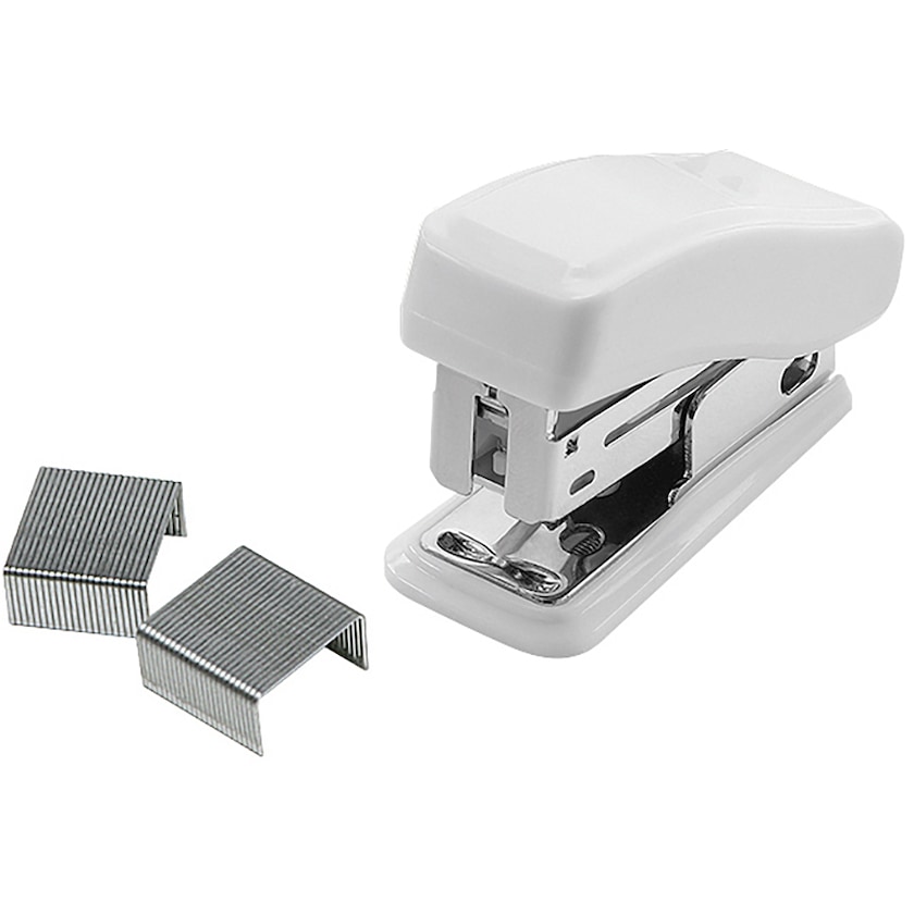 Hefter im Miniformat. Kommt mit Heftklammern vom Typ 26/6. Der Druck kann maximal zweifarbig erfolgen.