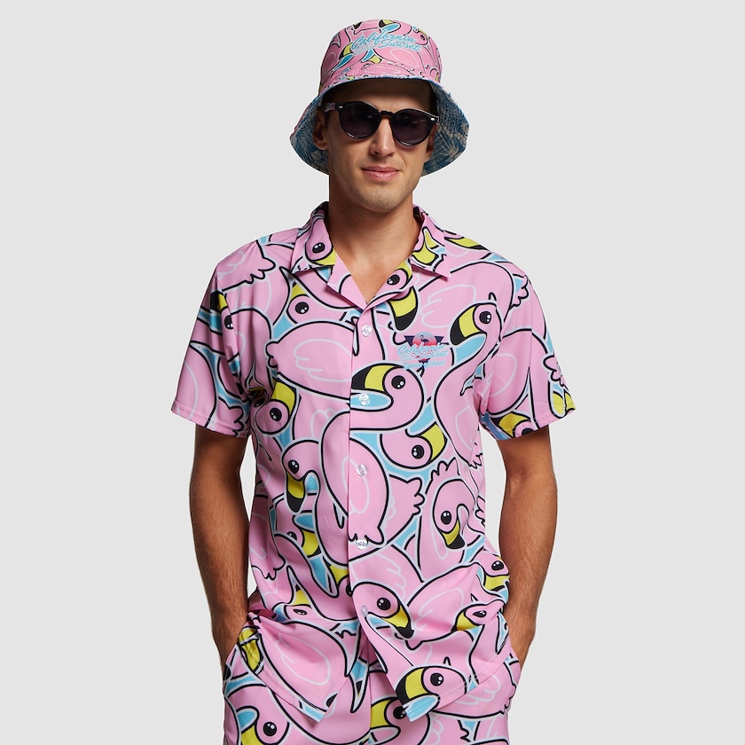 Hawaiihemd, hergestellt aus Ihrem eigenen Stoff. Perfekt für die Sommerparty! Der gesamte Stoff lässt sich nach Ihren Wünschen bedrucken. Sie können zwischen weißen, grauen und schwarzen Knöpfen wählen. Erhältlich in den Größen XS bis 4XL. Die Mindestbestellmenge pro Größe beträgt 10 Stück. Das Hemd wird im CMYK-Verfahren bedruckt, wodurch Farbabweichungen von bis zu 15% möglich sind. Die Größentoleranz beträgt +/- 2 cm. Optional können Sie ohne Aufpreis individuelle Namen aufdrucken lassen. Da die Hemden speziell angefertigt werden, ist die Lieferzeit länger als üblich. Gibt es auch als Damenmodell.