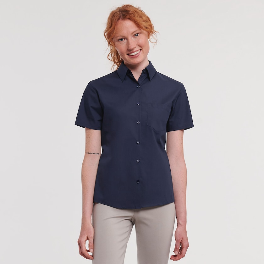 Kurzärmeliges Damenhemd aus widerstandsfähigem Polyester. Stückverpackt.