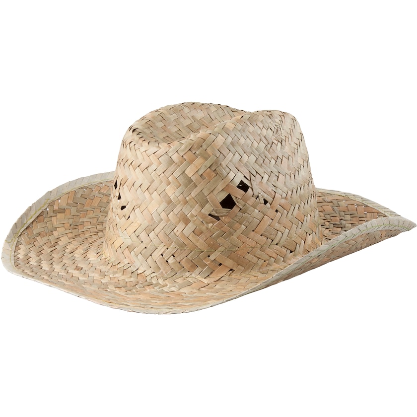 Strohhut in Unisexausführung. Der Druck erfolgt auf einem non-woven-Band in wahlfreien Farben (siehe Detailbild), das auf den Hut genäht wird.