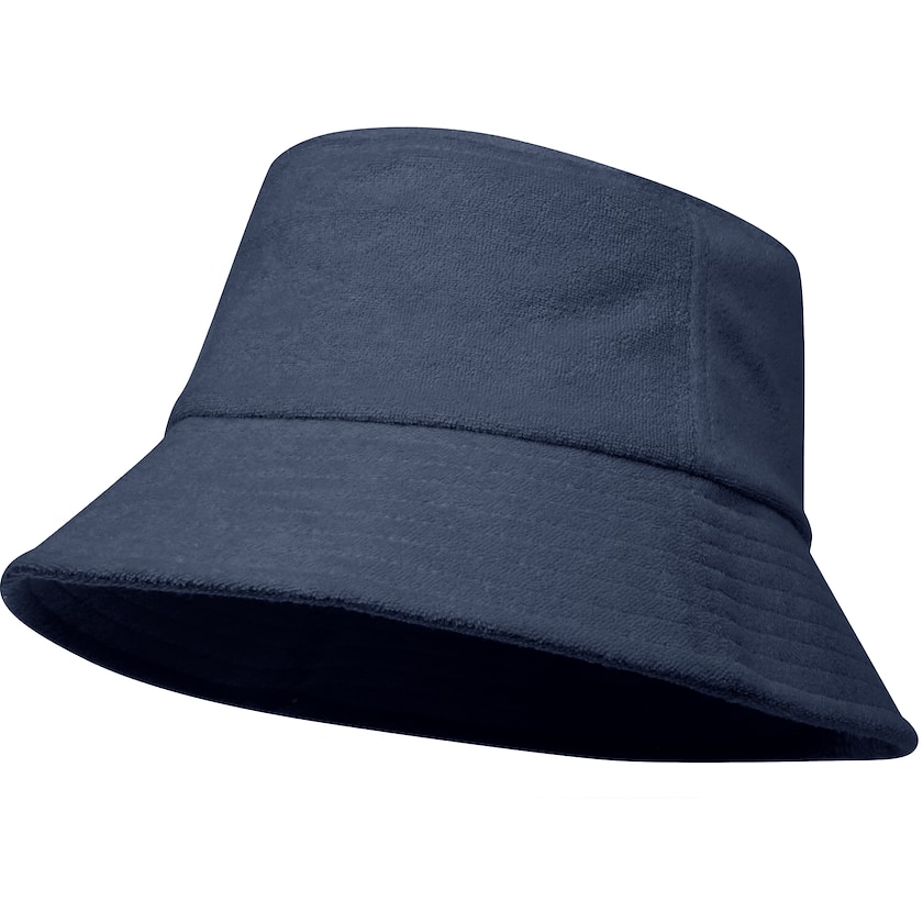 Sonnenhut aus Frottee, der aus recyceltem Polyester besteht. Der Sonnenhut ist für einen Kopfumfang von 58 cm geeignet und passt damit den meisten Personen.