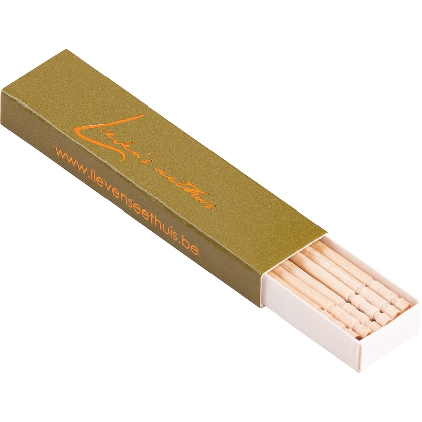 Schachtel enthält ca. 20 Zahnstocher aus Holz. Schachteldruck nach Wunsch.