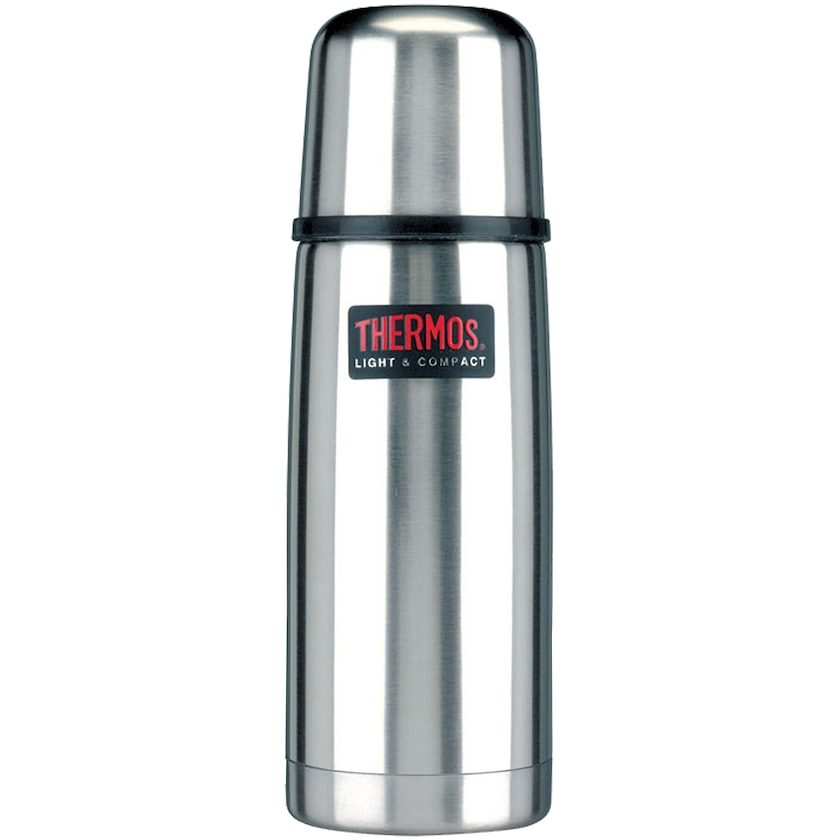 0,35-Liter-Thermoskanne der Marke Thermos. Die Kanne ist aus Stahl gefertigt und bietet eine patentierte Vakuumtechnik.
