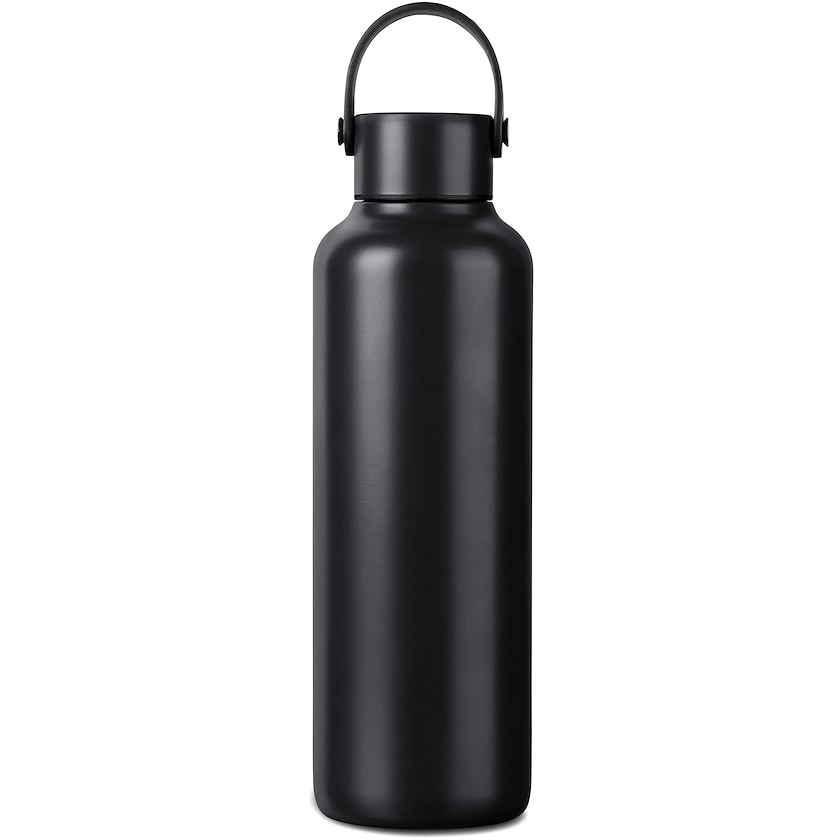 Thermoskanne mit schlichtem Design. Diese Thermoskanne besteht zu 80 % aus recyceltem Edelstahl und zu 20 % aus normalem Edelstahl. Sie hat eine doppelte Wand. Getränke bleiben 12 Stunden lang kalt und 6 Stunden lang warm.