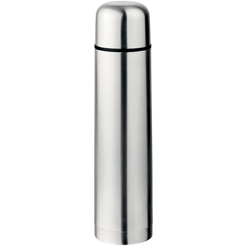 Stilvolle Stahlthermoskanne aus rostfreiem Stahl, umfasst 1 Liter. Die Beschriftung erfolgt mittels Lasergravur oder 1-Farbdruck.