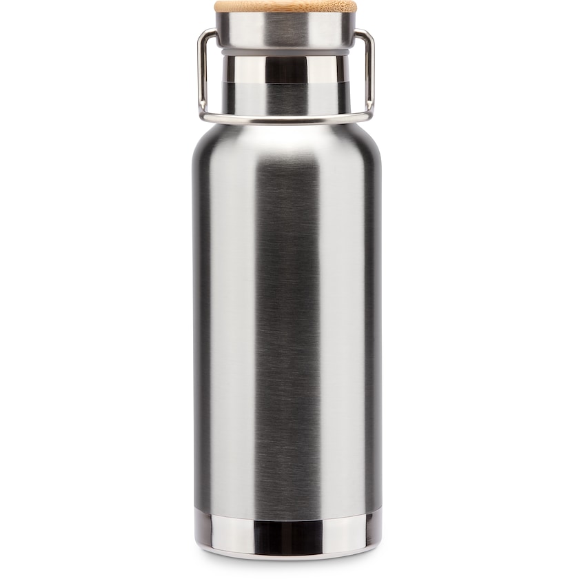 Moderne Thermoflasche mit Logo. Hält Getränke für 48 Stunden kalt und mindestens 12 Stunden warm. Schraubverschluss mit Holzdetails. Die Lieferung erfolgt in einer eleganten Geschenkverpackung. Der Druck kann nur in einer Farbe erfolgen.