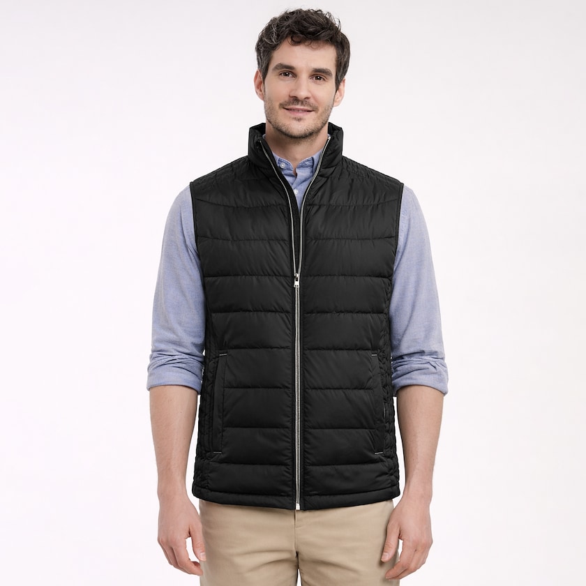Moderne Weste für Herren. Der Stoff ist für mehr Wasserbeständigkeit mit Aquapel™ von Nanotex® behandelt. Das Futter ist umwelteffektiv und kommt von Dupont™ Sorona®. Die Weste hat viele schöne Details wie viele Taschen. Die Jacke erfüllt die Anforderungen von Öko-Tex® Standard 100. Das Logo wird aufgestickt. Gibt es auch als Damenmodell.