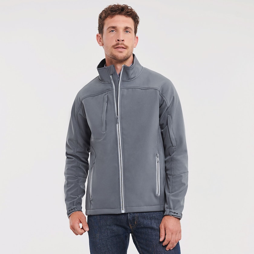 Innovative Softshell-Jacke für Herren. Die Jacke hat eine perfekte Passform und bietet bei Wind und Wetter Schutz. Das Material hat ein modernes System, mit dem die Jacke atmungsaktiv ist. Geliefert wird einzeln verpackt in Plastiktüten. Die Jacke ist ganz PFC-frei. Gibt es auch als Damenmodell.