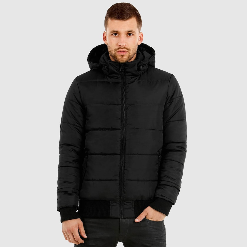 Gefütterte Winterjacke mit Kapuze und kontrastfarbiger Innenseite. Die Jacke ist aus Polyester 300T und hält Wind und Wetter stand. Sie hat zwei Reißverschlusstaschen außen und eine Innentasche. Zudem hat sie einen festen Kragen und eine abnehmbare Kapuze. Gibt es auch als Damenmodell.