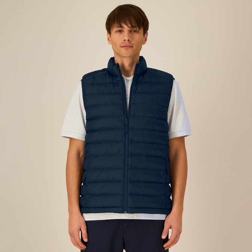 Wattierte Weste der Marke Stanley & Stella. Die Weste verfügt über eine wasserabweisende Oberfläche. An den Seiten befinden sich Taschen mit Reißverschluss. Gibt es auch als Damenmodell.