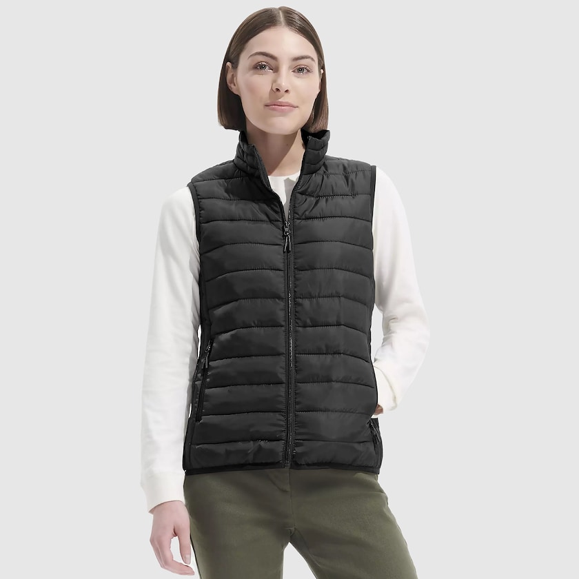 Leichte Damenweste der französischen Marke SOL. Die Weste verfügt über Seitentaschen und einen hohen Kragen. Gibt es auch als Herrenmodell.