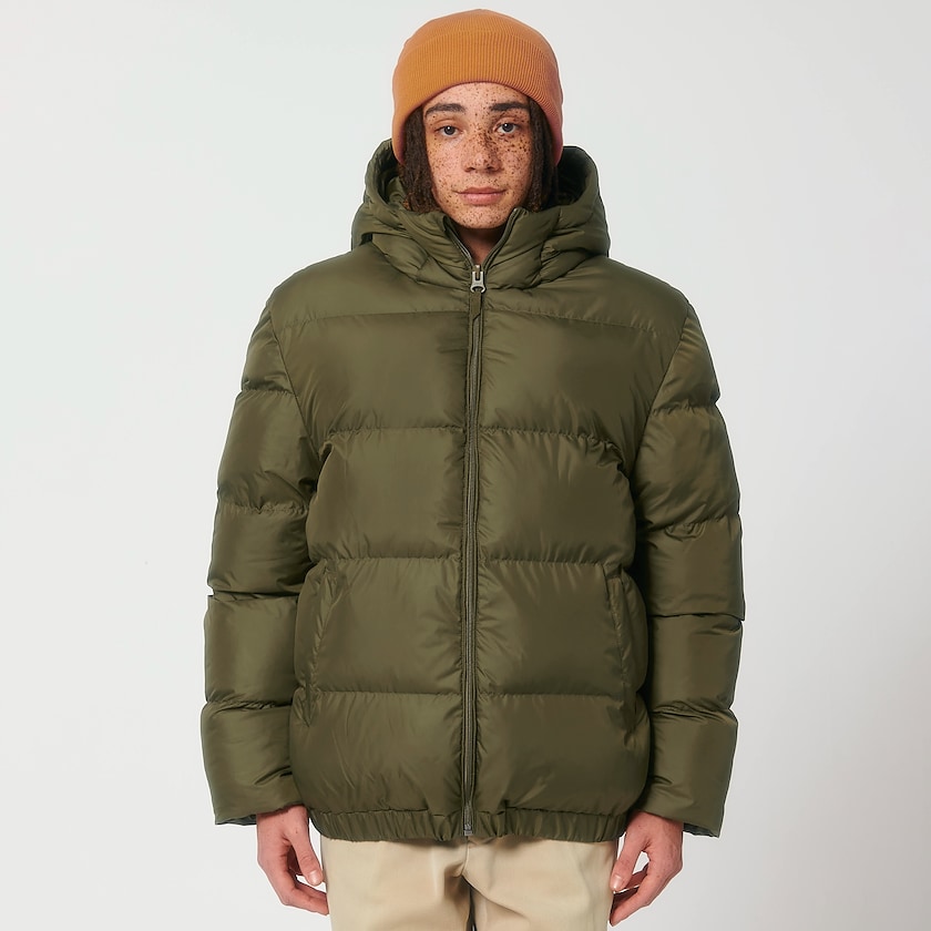 Gefütterte Jacke aus recyceltem Polyester. Die Jacke samt Kapuze ist angenehm gefüttert. Die Taschen sind mit Reißverschlüssen versehen. Innen befindet sich eine Innentasche mit Reißverschluss.