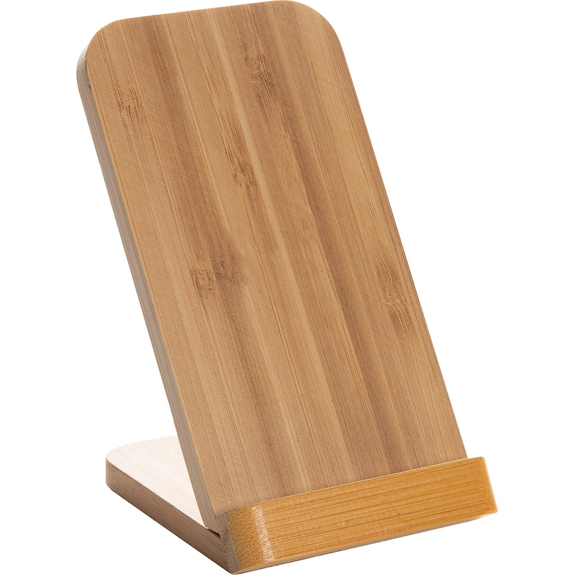 Kabelloses Ladegerät aus FSC-zertifiziertem Bambus. Funktioniert auch als praktischer Handyhalter. Wird mit einem Micro-USB-Kabel aus recyceltem TPE geliefert.