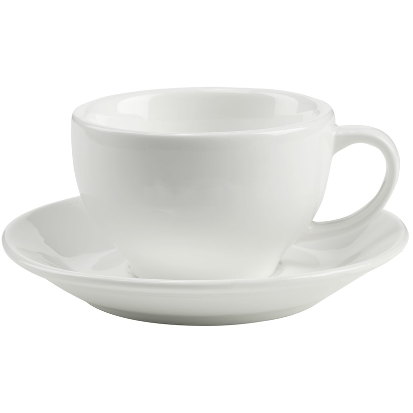 Cappuccinotasse mit dazugehöriger Untertasse. Sowohl Tasse als auch Druck sind spülmaschinenfest. Der Aufdruck kann entweder auf der Tasse oder der Untertasse angebracht werden.