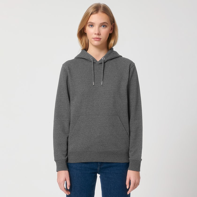 Hoodie aus umweltfreundlichem Material. Der Hoodie hat die klassischen Details und ist ein Unisex-Modell. Der Stoff besteht aus 43% Bio-Baumwolle, 42% recycelter Baumwolle und 15% recyceltem Polyester. Durch das recycelte Material ist der Stoff etwas rauer als gewöhnlich.