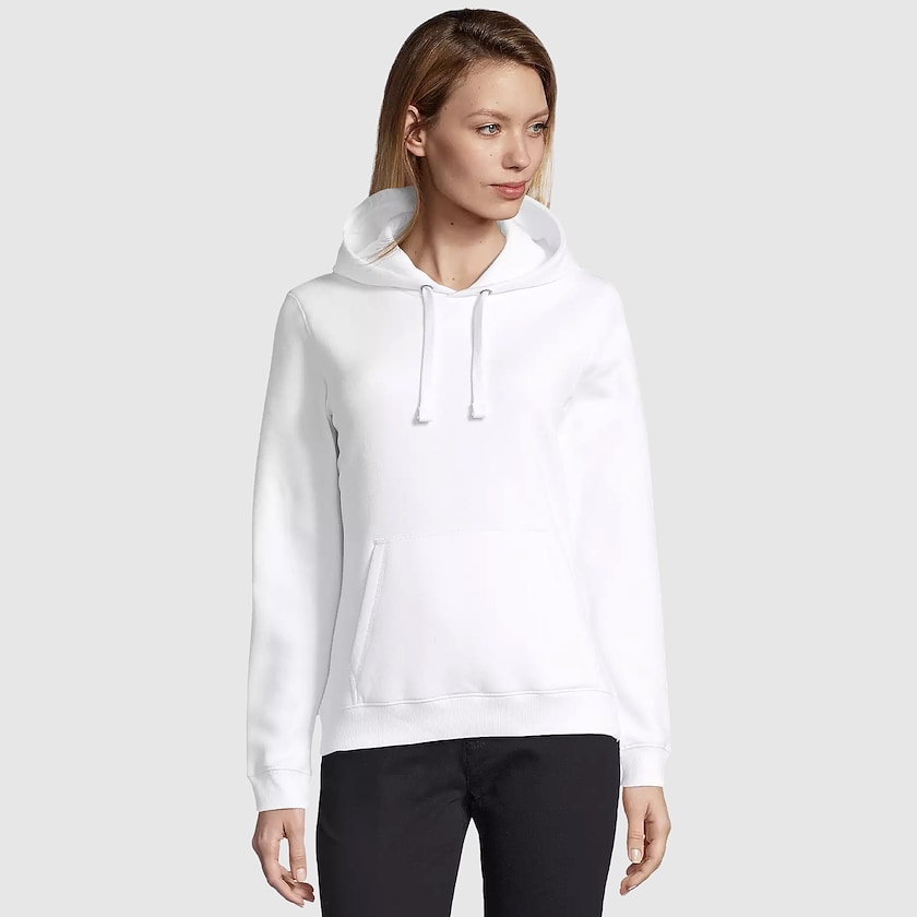 SOL's Hoodie für Damen, der ab 5 Stück gekauft werden kann. Der Hoodie hat eine moderne, aktualisierte Passform und ist in vielen Farben erhältlich. Der Stoff besteht aus einer strapazierfähigen Mischung aus Baumwolle und Polyester. Die Baumwolle ist OEKO-TEX zertifiziert. Gibt es auch als Herrenmodell.