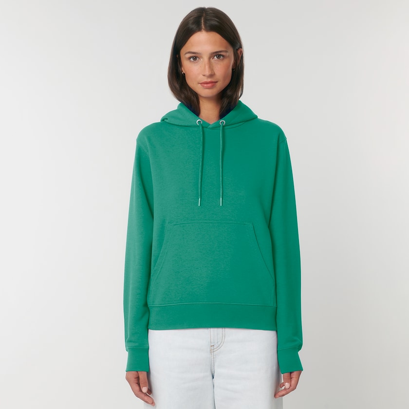 Unisex-Kapuzenpullover von Stanley & Stella. Der Stoff besteht aus 85% Bio-Baumwolle und 15% recyceltem Polyester. Ein modischer Kapuzenpulli mit umweltfreundlichem Stoff.