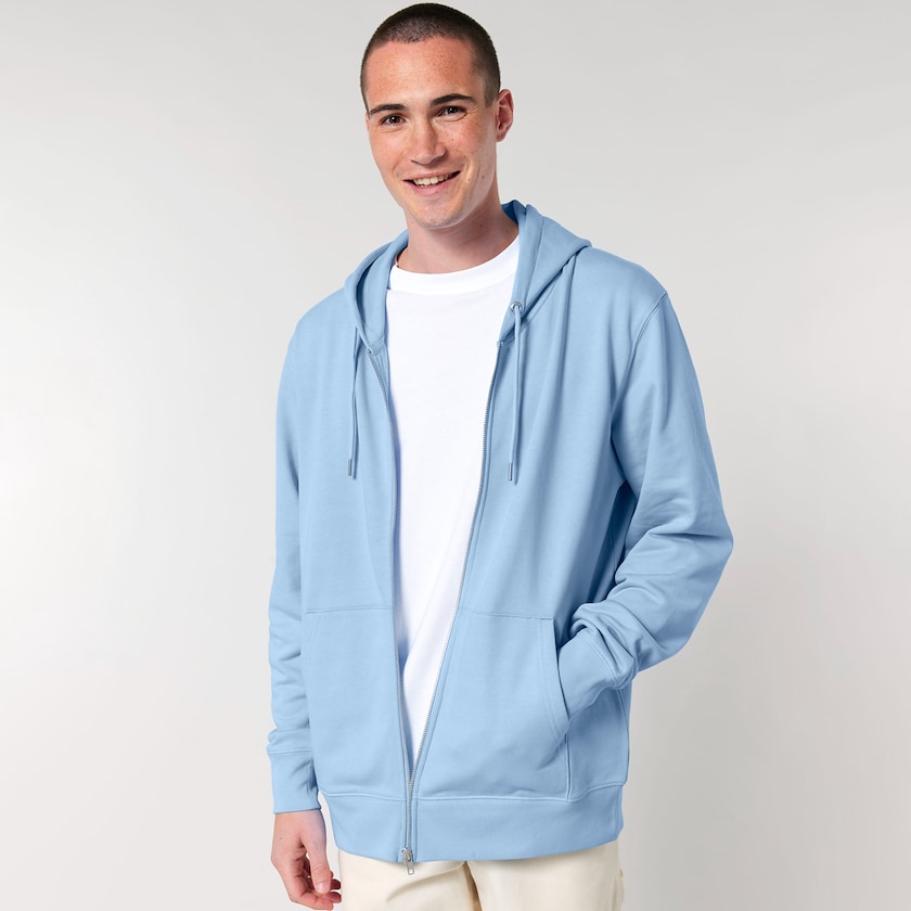 Umweltfreundlicher Kapuzenpullover für Damen und Herren mit langem Reißverschluss. Der Hoodie besteht aus 100 % Bio-Baumwolle.