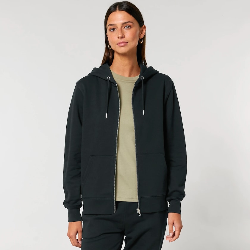 Umweltfreundlicher Kapuzenpullover für Damen und Herren mit langem Reißverschluss. Der Hoodie besteht aus 100 % Bio-Baumwolle.
