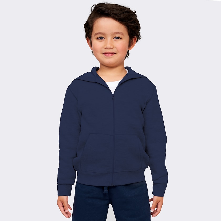 Hoodie mit durchgängigem Reißverschluss für Kinder. Der Hoodie besteht aus einem strapazierfähigen 260-Gramm-Stoff aus 50 % Baumwolle und 50 % Polyester. Die Größen sind wie folgt: XL: 6 Jahre (106-116 cm), XXL: 8 Jahre (118-128 cm), 3XL: 10 Jahre (130-140 cm), 4XL: 12 Jahre (142-152 cm).