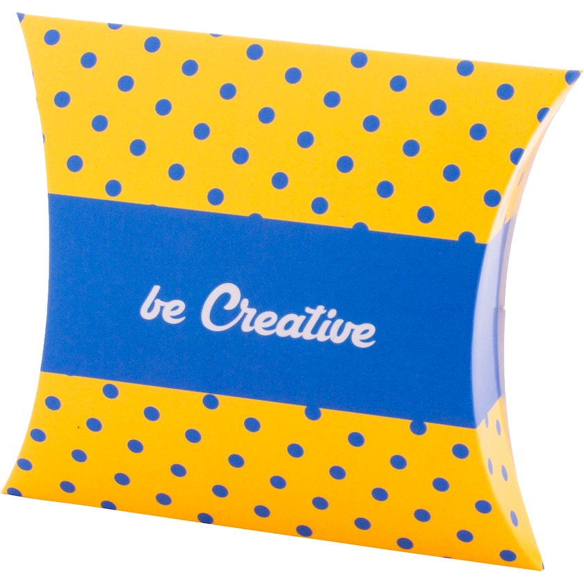Kleine selbstschließende Geschenkbox in Kissenform. Die gesamte Außenseite lässt sich nach Ihren Vorgaben bedrucken. Die Rückseite ist mit einem Verschluss ausgestattet, sodass die Box nicht mit Klebeband verschlossen werden muss. Wird flach geliefert.