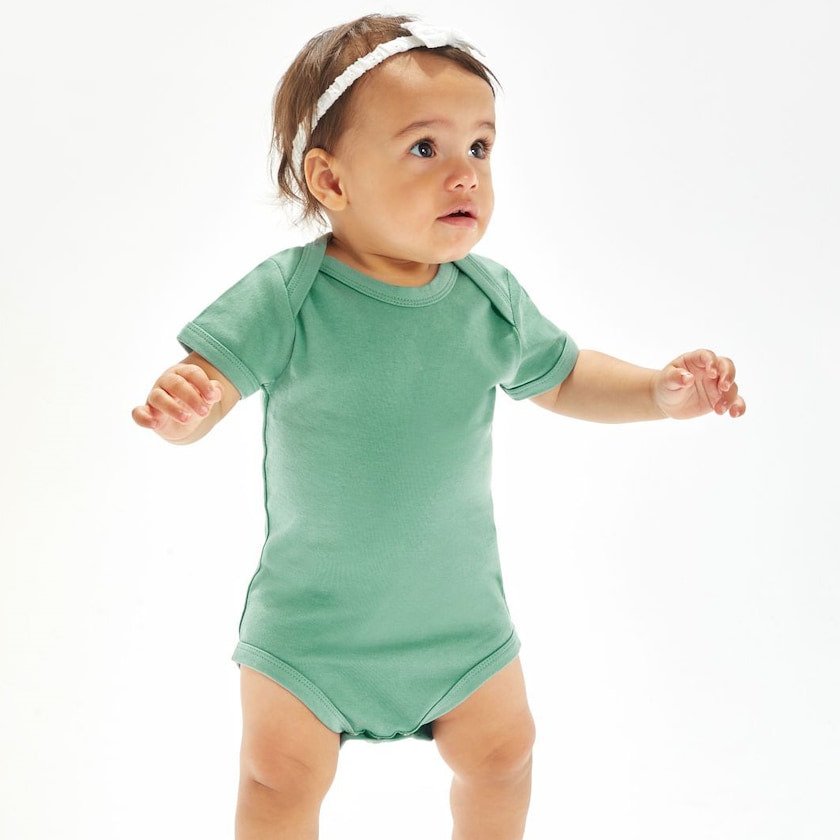 Body für Babys. Baby Bugz Baby Bodysuit ist je nach Farbe aus verschiedenen Materialien. Black, white, camouflage green, cobalt blue, fuchsia und organic naturalsind aus 100 % Bio-Baumwolle. Heather grey melange ist aus 85 % Bio-Baumwolle und 15 % Polyester. Mocha und charcoal grey melange sind aus 60 % Bio-Baumwolle und 40 % Polyester. Alle anderen Farben sind aus 100 % Baumwolle. Größe 86/92 gibt es nur in den Farben schwarz und weiß.