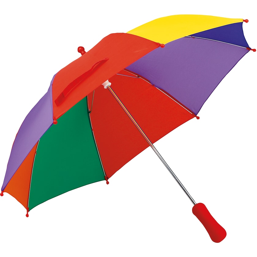 Regenschirm für Kinder in Regenbogenfarben. Regenschirm Candy wird manuell bedient.