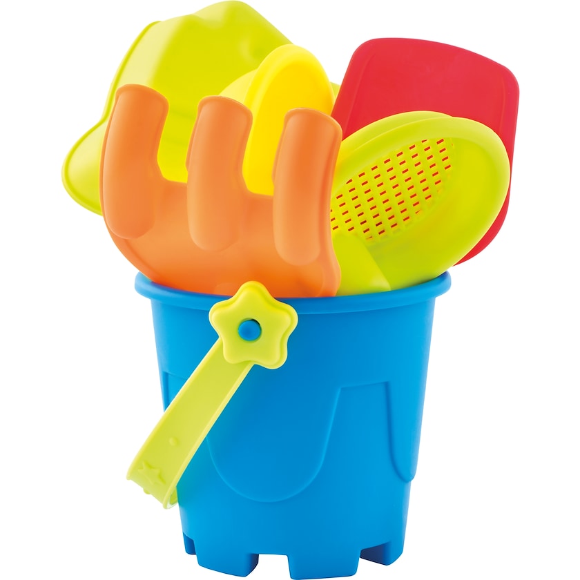 Sandkastenspielzeugmit Schaufel, Eimer und Förmchen. Alle Teile haben leuchtende Farben. Der Druck wird auf der Netztasche angebracht, sehen Sie sich die Druckschablone für mehr Informationen an. Bestellen Sie Sandkastenspielzeug mit Logo bei Axon Profil!