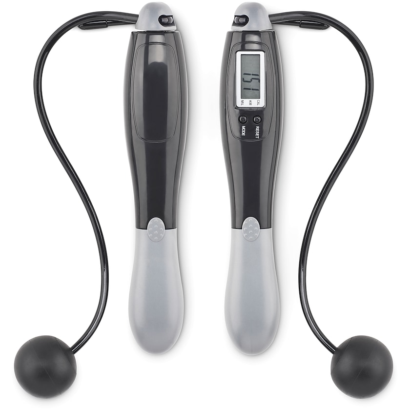 Digitales Springseil ohne Schnur. Dies ist das Springseil für alle, die wenig Platz haben oder es einfach schwierig finden, mit einem normalen Springseil zu springen. Das Springseil wird in einer Aufbewahrungstasche geliefert. Gedruckt wird auf die Aufbewahrungstasche.