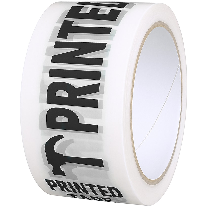 Der Druck erfolgt durch Flexodruck auf der Oberfläche des Klebebandes (flexoprint on top).