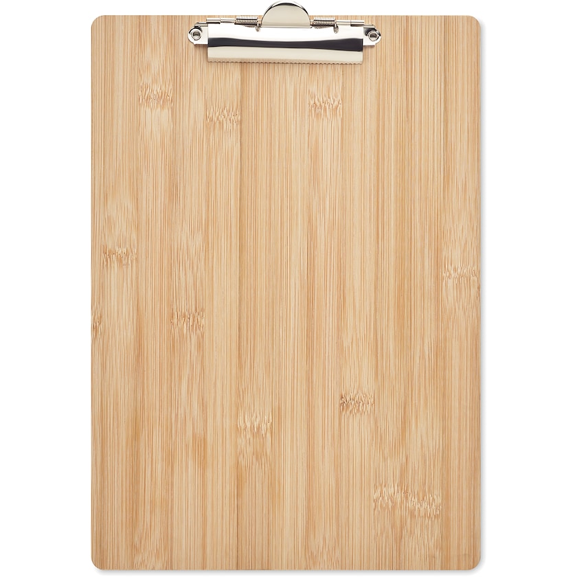 A4 Klemmbrett aus Bambus. Bambus ist ein natürliches Material, das dem Produkt Charme und Charakter verleiht. Sie wählen zwischen Druck und Lasergravur.