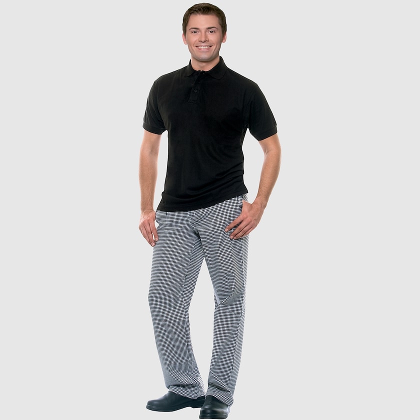 Zeitlose Kochhose für Herren. Hinten befindet sich ein Gummizug für mehr Komfort. Die Hose hat Vordertaschen und eine Gesäßtasche. Verträgt Industriewäsche bis zu 95 °C. Auch als Damenmodell erhältlich.