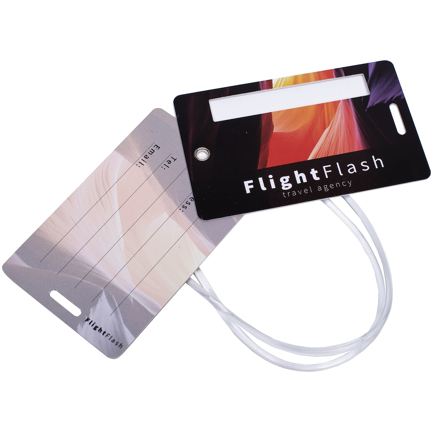 Speziell angefertigter Kofferanhänger aus hartem PVC. Jeder Kofferanhänger enthält zwei Karten. Der Druckpreis bezieht sich auf das digitale Bedrucken der Vorder- und Rückseiten beider Karten. Ein passendes Gummiband ist im Lieferumfang enthalten.