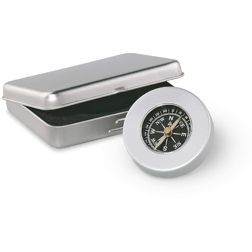 Stilvoller Kompass in hübscher Geschenkschachtel. Der Kompass ist aus Alumnium, die Markierung erfolgt mit Druck oder Lasergravur.