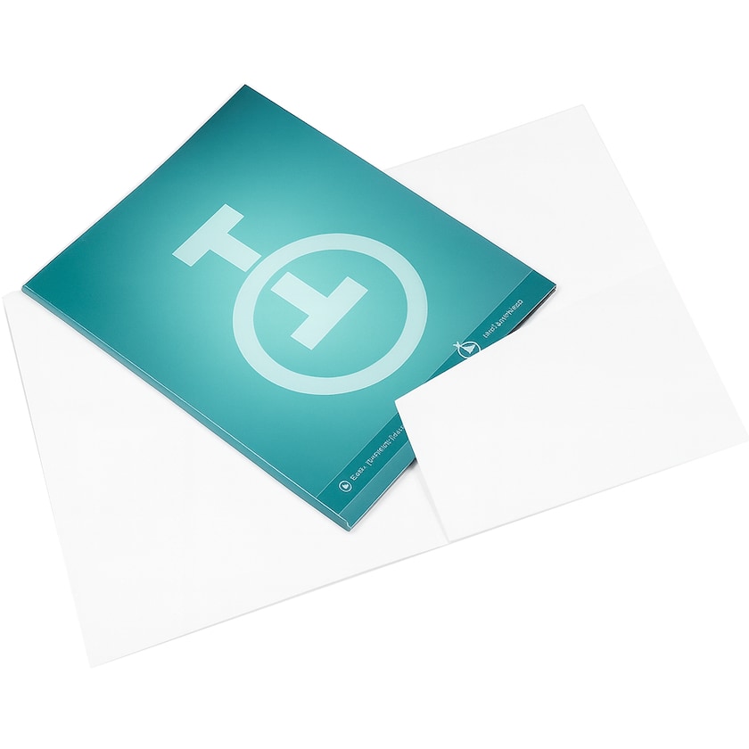 Hochwertige, geleimte Präsentationsmappe mit eigenem Druck. Die Innenseite ist weiß, die Außenseite wird nach Ihren Wünschen mit 4-Farbdruck versehen.