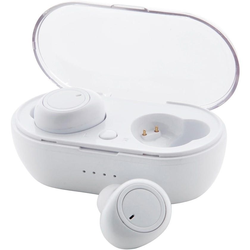 Funk-Kopfhörer mit handsfree-Funktion. Die Kopfhörer werden in ihrem Etui geladen. USB-Ladekabel im Lieferumfang enthalten.