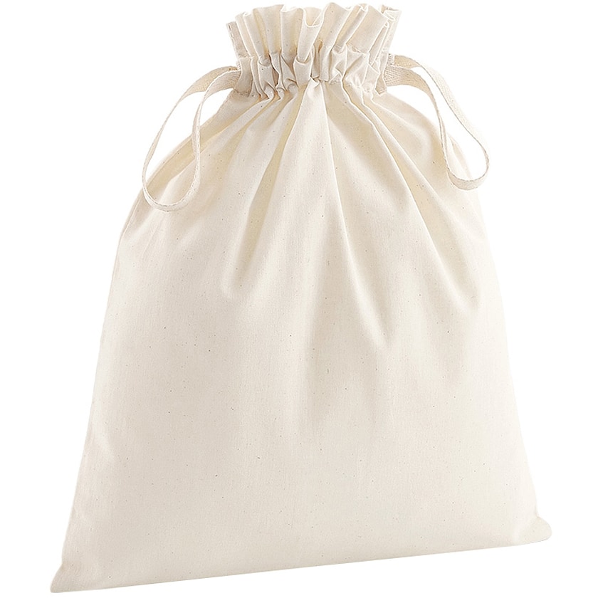Luxuriöser Baumwollbeutel aus 115 g Bio-Baumwollstoff. Der Beutel ist auch in anderen Größen erhältlich.