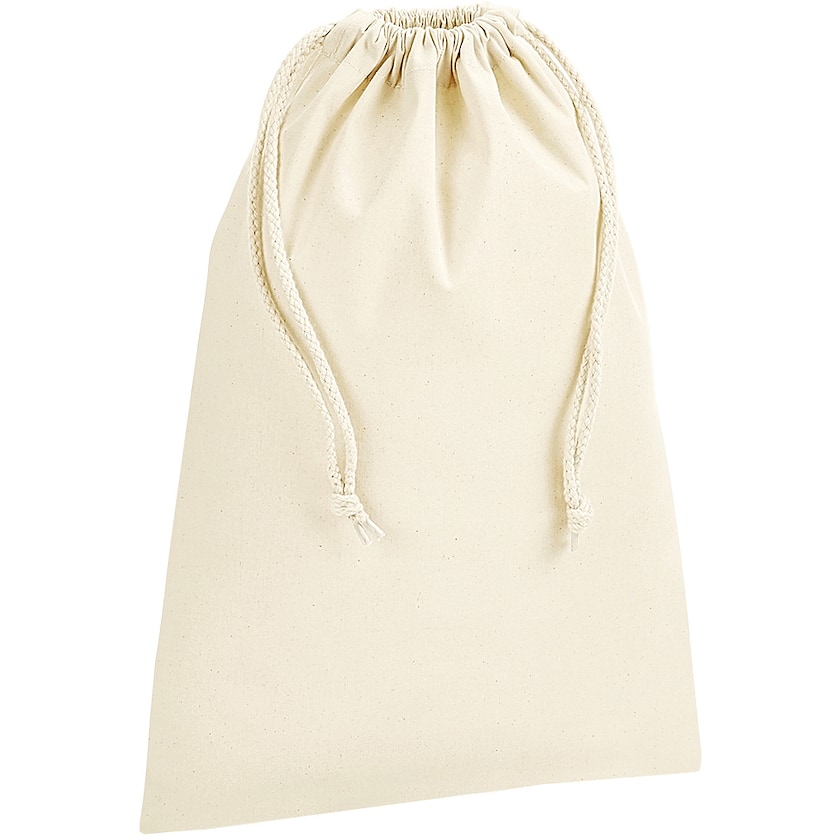 Großer Baumwollbeutel aus 200 g Bio-Baumwollstoff. Easton L mit doppeltem Zugverschluss für einen verbesserten Verschluss. Der Beutel fasst ca. 15 Liter.