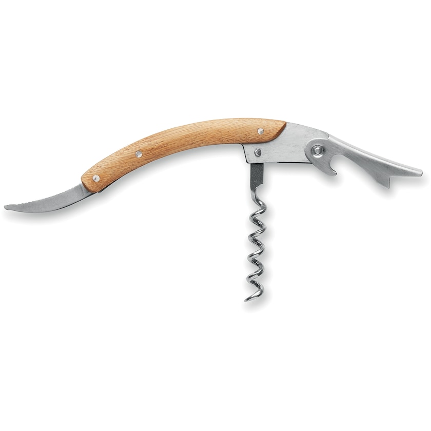 Exklusiver Korkenzieher aus Bambus und Edelstahl. Savoie ist mit einem Korkenzieher, einem Folienschneider und einem Flaschenöffner ausgestattet.