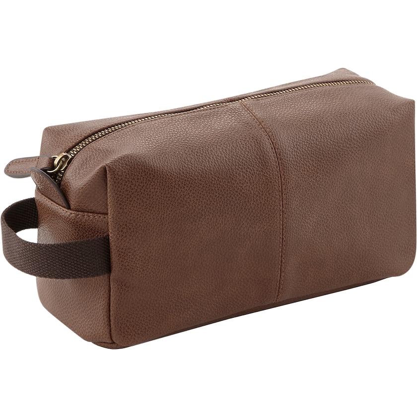 Luxuriöser Kulturbeutel aus Kunstleder. Die Innenseite des Kulturbeutels ist mit einem gestreiften Stoff gefüttert, der sich leicht säubern lässt. Im Inneren befinden sich Aufbewahrungstaschen für kleinere Gegenstände. Der Kulturbeutel fasst 3 Liter.