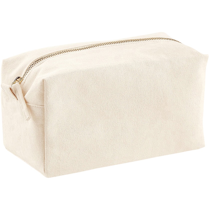 Naturfarbener Kulturbeutel aus kräftigem Baumwollstoff. Der Kulturbeutel hat einen Reißverschluss. Perfekt für alle, die einen naturfarbenen Kulturbeutel zu einem guten Preis suchen!