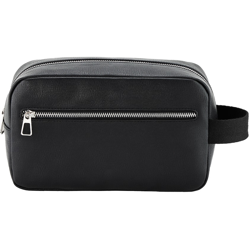 Hochwertiger, umweltfreundlicher Kulturbeutel. Der Außenstoff besteht aus Polyurethan und das Futter aus recyceltem Polyester. Es gibt Reißverschlusstaschen auf der Vorderseite und innen.
