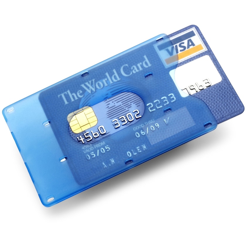 Sehr günstiges Kreditkartenetui aus Frost Plastik.