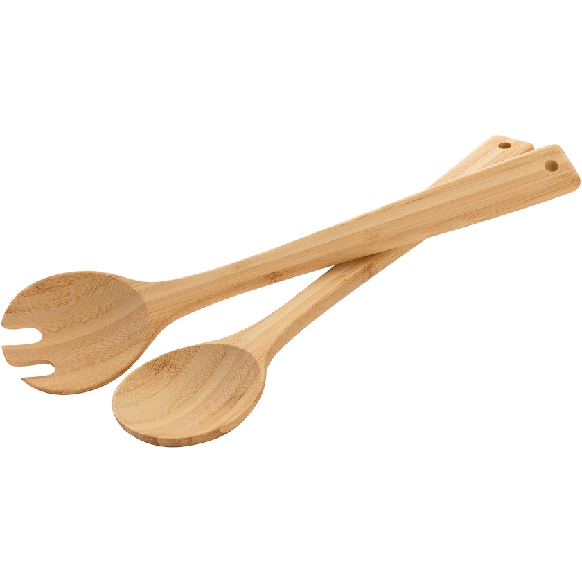 Salatbesteck aus Bambus von Ukiyo. Ein schönes Geschenk, das garantiert gut ankommt. Geliefert in einer stilvollen Geschenkbox. Der Markierpreis bezieht sich auf den Druck oder die Lasergravur auf einem der Besteckteile.